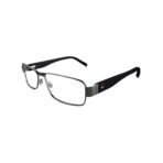 The TH54 features a full-rim rectangular silhouette, designed to provide a structured and masculine appearance while maintaining a refined and easy-to-wear profile. The “25438727” color code typically represents a gunmetal finish paired with black or dark acetate temple accents, giving the frame a modern, sporty-luxury aesthetic with subtle branding details.